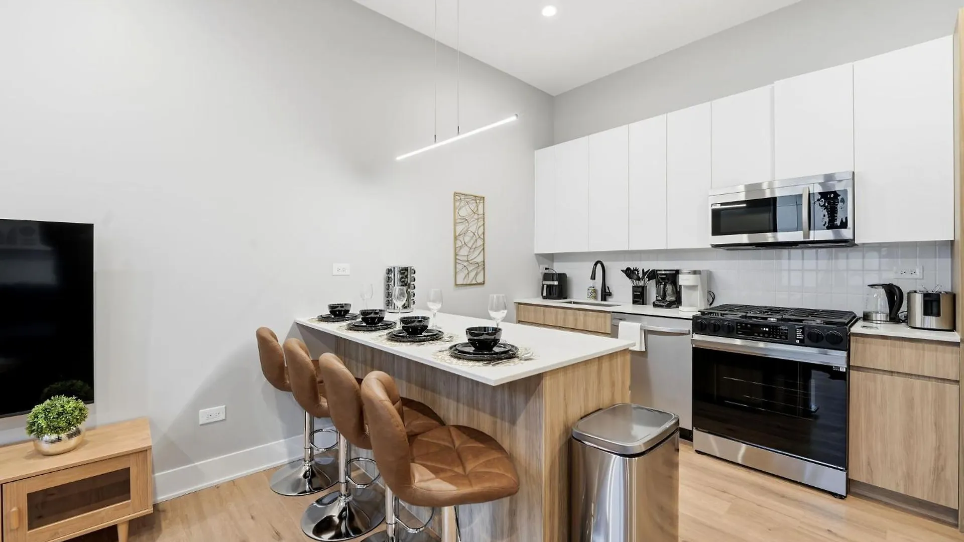 Comfy Condo - Gym Free Parking & Modern Amenities Chicago bevindt zich op 25-minuten wandelafstand van Rosehill begraafplaats en biedt Wi-Fi. Dit appartement met een patio ligt in de buurt van het Lane Strand en heeft uitzicht over het meer.